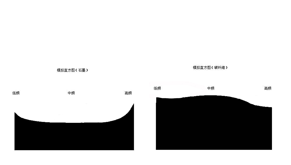 好了,废话少说,谈谈碳纤维和石墨到底有何不同,都是炭元素够成的物质,个性能有很大不同,甚至互补吗?让我们先用图片来说话,在下借鉴数码相机中的直方图描述石墨和碳纤维两种垫材的基本个性。