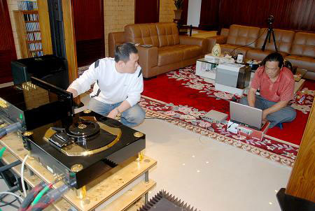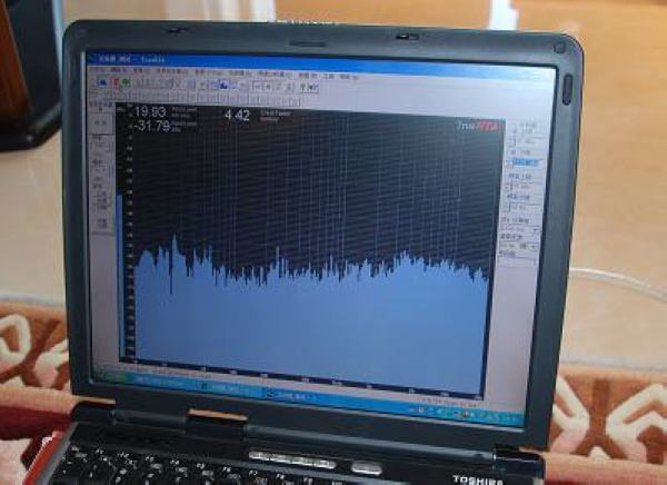 老黄说:光凭听感谈平衡有什么意义?做什么都要有个标准,拿出个指标来看看。这几天,北京的鲁江兄不远千里再次来到老黄的听音室,不过这次鲁兄带来一套音响测试软件和一堆仪器,要为老黄和几位挑剔的鹤城发烧友进行现场测试。