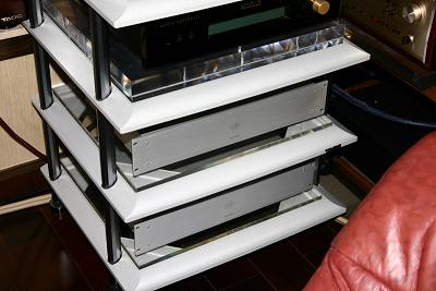(作者:合肥蒋鹏 时间:2008-12-09 08:25:28)- 前级杜兄采用了两台CELLO的前级,一台是旗舰 Suite ,一台是12粒扣。Suite 前级上装载了两个唱放卡,方便切换唱机使用。