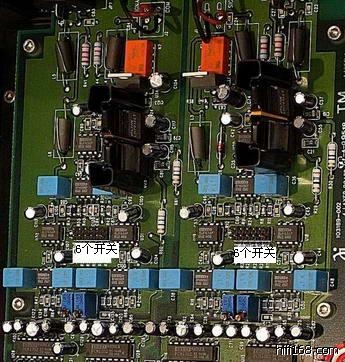 (作者:LDH 时间:2008-11-21 09:55:53)- 照片中的六个组合开关应该就是调整电压的,马克也很喜欢这样的设计,早期的MARK 0.26等前级的输出电平也是使用这么几个组合开关调整的。