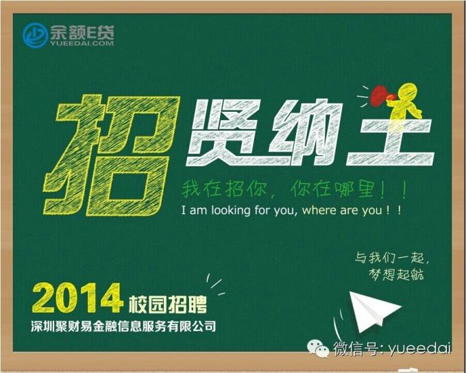 余额E贷是深圳市聚财易金融信息服务有限公司旗下产品,本公司凭借雄厚的资本和运营实力,跻身于国内互联网金融平台龙头行列。公司目前处于开疆拓土快速发展时期,秉着“德才兼备”的用人之道,特在全国高校进行巡回招聘,广纳贤才。