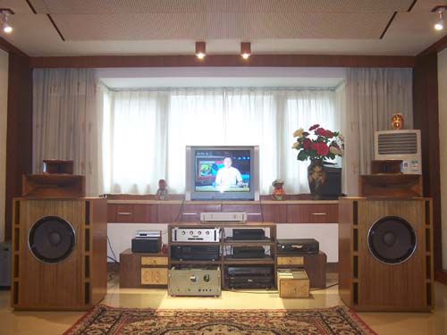 自从在朋友那里听了复刻的TAD2402后,便被那大气、宽松、真实、自然的声音所毒倒,迷上TAD一发不可收拾,但苦于囊中羞涩,只好DIY了。先是收了一对美国产的MS1401A的中高音激励器,参数为:16Ω—40W 800HZ 12dB/OCT。外径达φ160mm,应是钢磁的,听感相当不错。然后又找到一对与其绝配的原木号角,说绝配一是买前问商家该号角分频点是多少?答曰:800HZ,正好!再问联结器喉孔及螺孔,又正好。该激励器振膜与喉介于TAD4001与TAD2001之间,曾与TAD2001简单地对比了一下,感觉声音在厚润和情感方面似乎胜出,但量感稍微弱一些,灵敏度约在107dB/W/m左右。细节也少一些,大概频响没有那么宽,估计不会超过12KHZ,高频延伸自然不会好。也许MS1401A单元在国内很少见,知道或玩过的人少的缘故,当初购入价不是很高,我认为它在目前的中高音激励器里性价比是很高的。只要配一个合适的超高音便可以弥补高频不足的缺陷,我现在就是用金琅的G2做超高音,请看下文分解。