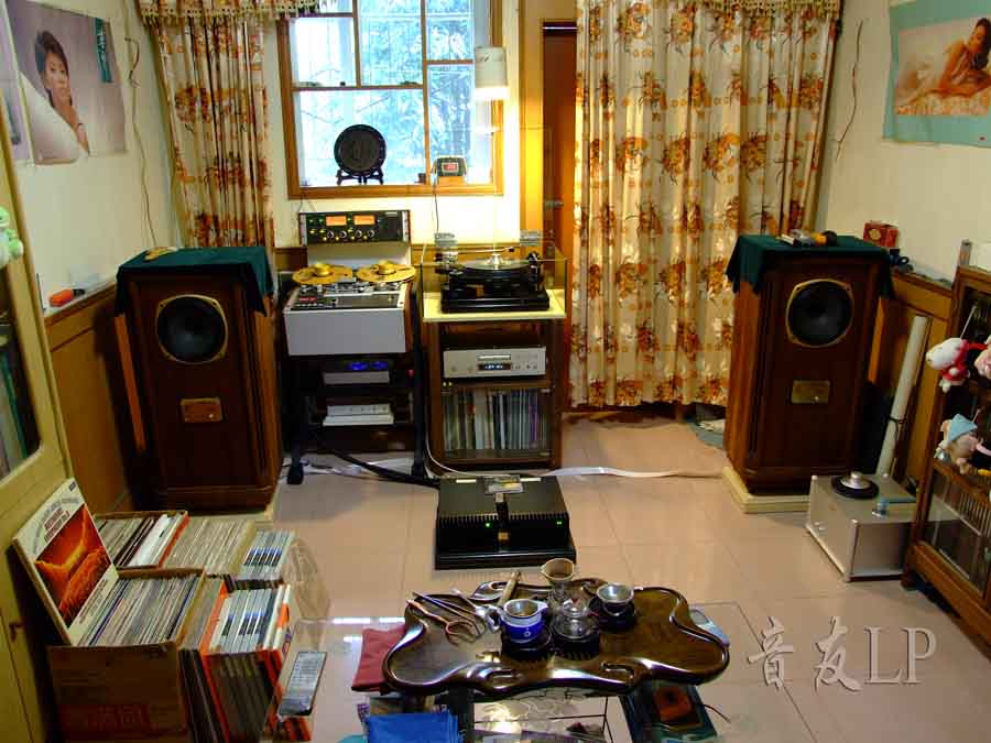 这是个老烧友的音响系统,他衷爱黑胶唱盘是个老烧黑胶爱好者:黑胶唱盘是英国诺丁汉10周年纪念加强版、12寸诺丁汉唱臂、高度风新款30W唱头、另一支SMEV臂、BENZ MC RUBY SILVER(银线圈)唱头、英国产和弦(CHORD)唱放、瑞士STUDER TAPERECORDERA810开盘录音机,既当前级又玩录音,声音很好.CD机只是作为热机时用一下,平时少听.后级是德国产JSL238 180W单声道分体后级、英国天朗贵族系列土背利音箱.