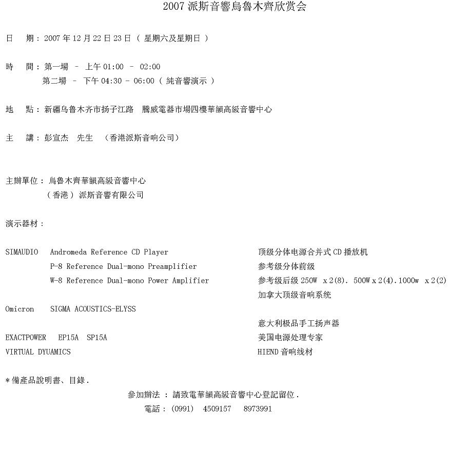 音乐丝路-2007派斯音響烏魯木齊欣赏會