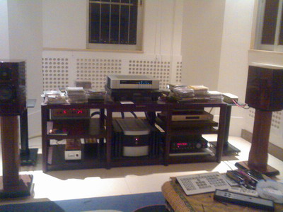 一进听音室,却丝毫不见DD66000的踪影,一行人正在纳闷,老赵细道缘由,听音室刚刚建成,老赵又引进了一对同是发烧名器的英国B&W802D音箱,原来,这对802D才是这个听音室的主角,而DD66000将来另有安排之处,现在还在沈阳的HK音响公司,由那里的吴总代为煲机。一行人不免有些遗憾,虽然802D也非等闲之物,但已不新鲜,甚至他们几人中有人正在使用或是早已过手,而DD66000才是此行的目标。不能在第一时间亲眼目睹,亲耳聆听,失望之情不禁流露于表。