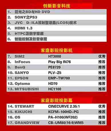 - 《家庭影院技术》2006-2007 年度优秀影音器材推荐榜