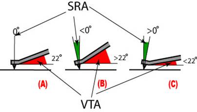 (作者:Jim Wang 时间:2004-09-30 22:59:45)- 先来谈谈什么是VTA和SRA。VTA,,是针杆(图6中灰色部分)和唱片平面形成的角度。图6中红色的区域就是VTA。SRA是针尖和唱片平面形成的角度。在图6中是绿色的区域。很明显,VTA和SRA是完全联系在一起的。VTA的变动必会引起SRA的变动。VTA实际上并不重要,真正重要的是SRA,即针尖切入唱片轨迹的角度。在完全理想的状况下,SRA必须是零。图6中(A)。但由于即针尖切入唱片轨迹的角度是没法用肉眼看到,VTA就成了我们唯一的和重要的对SRA的参考系数。现代唱针的设计SRA和VTA的关系是如图6(A)所示。当SRA等于零的时候,VTA大致为22度。这也是我们调整SRA的重要假设,即VTA等于22度时,SRA等于零。图6中(B)和(C)的是不正确的。在(B)中,SRA小于零,VTA就大于22度:同样,在(C)中,SRA大于零,VTA就小于22度。很多朋友们都错误地认为,只要把唱臂调成和唱片平面成水平,SRA就是正确的。这种想法是不正确的,其中假设的东西太多。而在我的调试方法中,我只有一个如上所述的假设。