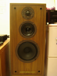 (作者:zjq 时间:2006-10-30 13:51:07)- 天气预报兄,这箱子外观图片是借的,现在用的箱子和这图片是一样的!箱子是我二手从香港买的,香港佬当时说的很清楚箱体里的喇叭线材换成LINN的了,效果比原来的要好(70年代东西可以理解),有个5.5寸中音单元补过,但绝对不影响音质!很多烧友来我家里听,一致认为这箱子的味道非常好!而且在大陆的市场是极少见的,只有在台湾有货,货源不多!箱子高度65×宽33×35箱体较大,很重!如真有喜欢这箱子的朋友请上门试听自提!