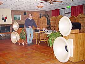 听不一会儿,卖油翁兄手又痒了,上去重新给音箱摆位,往前挪了几公分,声音太逼人,又稍往后挪了点,声音的层次感好了不少,人声总算和乐器分离开了。
