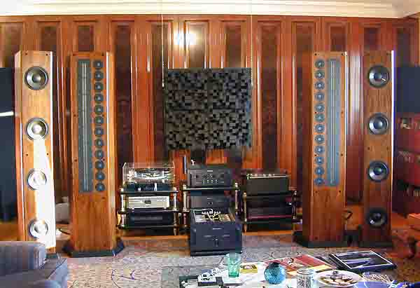房子装修好了,一切都为了发烧,也不理会美观的问题。像做不锈钢的师傅帮我做的架(吊concertino),实在很难看,像是一个铁笼把concertino监禁起来,不过就很牢固。环绕喇叭线用光了一卷VDH的线(100米),5芯视频线用15米BELDEN(以前还没有vdh的),s视频线用古河的。因为喇叭线要很长,就只用了AQ cv4, 不过前置箱每边走了4根。墙插用英国的MK,一个两百多的那种。电源从两个40A的电表来14mm的线到分配箱,再各自走6mm的线到每个墙插,所有的电线用南海广东电缆厂出的海鸥牌的,此牌子的铜质特别靓,不比国外的差。地线那时还没怎么留意,不知道电工师傅是接在水管上,还是建筑的钢筋上,反正没电到我就好了。(2002年才搞了条靓地线)