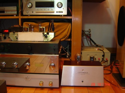 (作者:wyj_icbc 时间:2005-09-02 22:57:02)- 功放或6P1、或CR325、或欧博CYBER500 300B分体,CD新德克SACD。