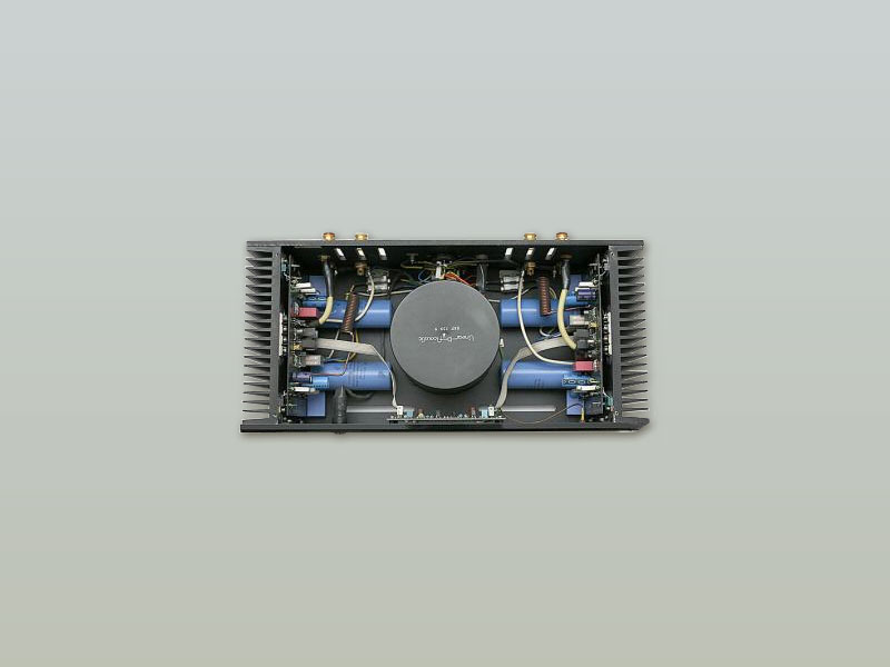 (作者:原始人 时间:2013-08-06 20:17:31)- 按照图片所见,这个功放是左右每声道供用一只电源牛,独立整流滤波,采用这种细长型电解,故障率就是高一些