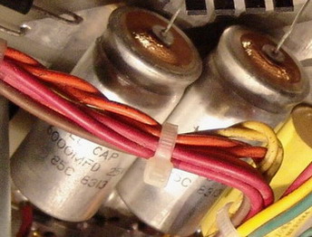 下面是ARC SP-10的电源机箱,由于时间较长,以前买来时图中那两个并排的白色电容就已经开始隆起外溢,但不影响听音。