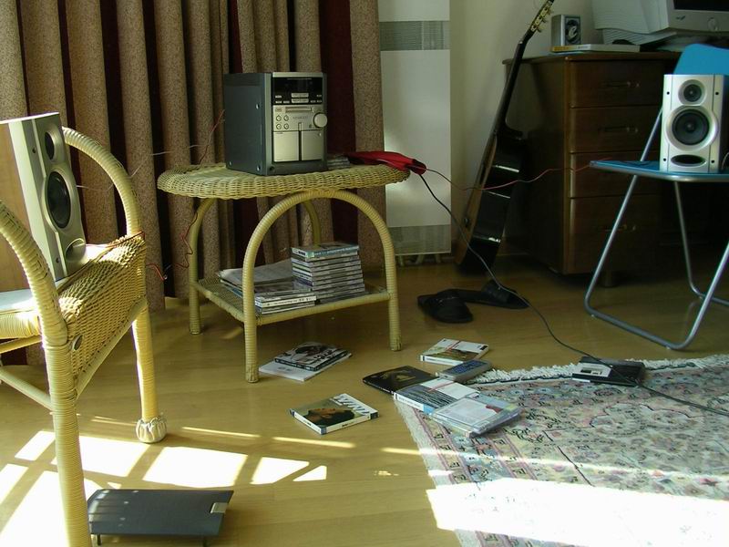 我不追求极度的发烧,不会每次听都先提前半小时打开前极后极煲机来得那么专业(俺是钱少的银啊),俺的耳朵大概一时半会也适应不了麦景图丹拿B&W鹦鹉螺(都是刚刚网上看来的名词)等等尤物,,,只要是能够在,,冬日阳光充足的午后,躺在地板上,摆弄大堆旧时买来的CD,稍稍感受下传说中的“高音甜,中音准,低音劲”,就知足了。