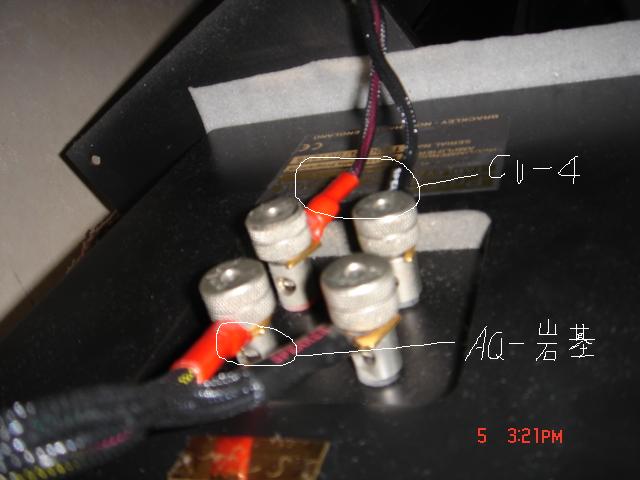 我是用TAG60I推高音,8000P推低音,音像为PROAC2000S。图是我俯拍的,大家帮我看看我的线接的对不对啊??!!特别是喇叭线。。。。