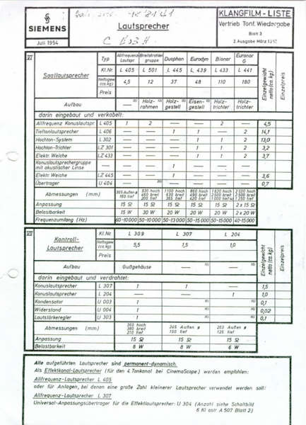 最近会回来一对难得的有声电影KL L501,siemens原厂资料:50-10000hz,103db!每边由二个KL L405 并联,4欧,或16欧(效率就变成91db)。原厂建议障板尺寸2.5*2.5米,一般都是用2*2米左右。估计全球少于500对(算算欧洲有多少影院就知道了),是难得的珍品。由于找到了一对蔡司20"的励磁全频,所以准备出手。有银弹的朋友请提前联系。我在深圳:13560799631