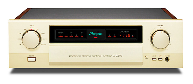 - Accuphase金嗓子推出全新C-2450前级,这款新机是C-2420的后续型号,融合了四十周年纪念版C-3800的旗舰技术,装载了全新改进的全平衡AAVA(Analog Vari-gain Amplifier)高级电子模拟式音量控制,定位于高级市场。 金嗓子全新C-2450前级,装载了全新改进的全平衡AAVA(Analog Vari-gain Amplifier)高级电子模拟式音量控制,AAVA系统能排除机械性接触点的音量机构,跳脱传统电阻式的音控技术,让音乐讯号不经过可变电阻,使阻抗变化完全不受被动元件影响。 AAVA虽然是以电子操作,但却是以模拟方式运作,因而免除数码 /模拟之间的转换,直接了当,也免除了一般电位器的音色渲染。Accuphase全新改进的AAVA系统能提供更高的信噪比,并将失真率进一步下降到1/2,实现超低的本底噪音;同时新的AAVA系统提高低负载驱动能力,通过于高性能全平行缓冲输入放大电路的配合,可以大幅度提高讯噪比与降低失真,并且使得音质进一步提升。 C-2450前级的内部电路的走线采用了全新的优化改良,以实现信号线路更短切换,从线路输入/选择到音量/放大输出都实现优化线路设计,采用更高性能的元件,具有更低噪声性能和优异的稳定性,将C-2450前级的性能更进一步提升。 Accuphase全新C-2450前级的外壳采用全独立左右声道的设计,从电源变压器、滤波开始已经完全左右独立配置,左右声道独立腔体屏蔽设计。这种“箱内箱”的双单声道设计,既能绝对隔绝左右声道之间的干扰,又能保证左右声道的指标的一致性,是一举两得的方案。同时在机箱设计上也特别做了改良,散热结构更优化,让空气对流冷却更高效。两组电源系统分别供给左右声道,配合定制音频级电源滤波电容,以保证纯正的电源供给。 金嗓子C-2450前级内部电路的走线采用了全新的优化改良、配合定制的具有低接触电阻和高耐久可靠性的逻辑继电器,以实现信号线路更短切换,从线路输入/选择到音量/放大输出都实现优化线路设计。C-2450前级的电路版使用低诱电率,低损失率的TEFLON基材,尽量减少传输损失。输入端子等主要几处采用金PLATE,提高声音的纯度,减少左右声道互相干扰的问题。 C-2450前级采用全平衡放大设计,新设计的线路具有超低失真, 低噪音, 高转换率得优点,全平衡放大技术比普通的放大技术,具有对称性好、失真小、稳定度高、驱动力强等优点。但全平衡放大对电路的元器件配对的要求相对比较苛刻,而且所用的元件将会增加一倍,所以多在专业机型或高级发烧器材上才被应用。